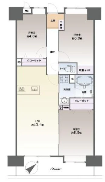 バルコニー面積 | 9.6㎡ | バルコニー向き | 南東 |