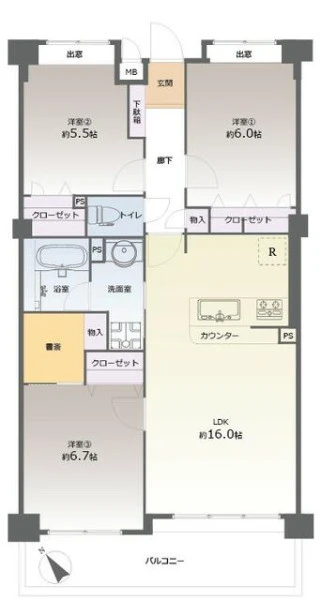 バルコニー面積 | 11.3㎡ | バルコニー向き | |
