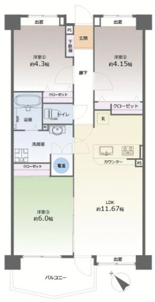 間取り | 3LDK | 間取り向き | |