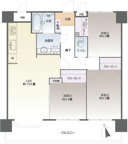 間取り | 3LDK | 間取り向き | |