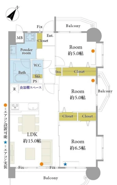 | 間取り | 3LDK | 間取り向き | (角部屋) |