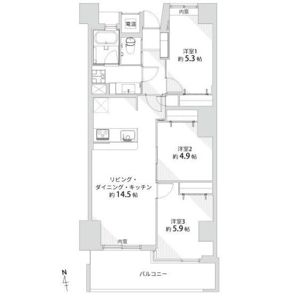 | 専有面積 | 67.27㎡(壁芯) | 建物構造 | 鉄骨鉄筋コンクリート(SRC) |