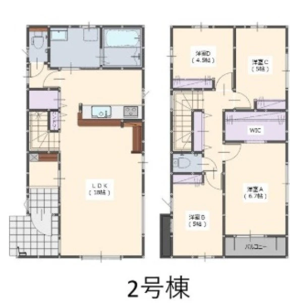設備 | 上水道、下水道、電気、都市ガス、食器洗浄乾燥機、追焚機能、浴室乾燥機、トイレ2箇所、ウォークインクローゼット | ||