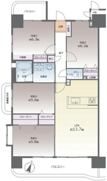 間取り | 4LDK | 間取り向き | |