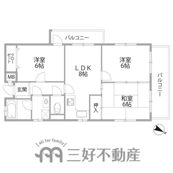 バルコニー面積 | 9㎡ | バルコニー向き | 北西 |