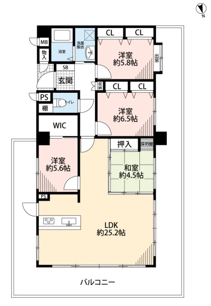 | バルコニー面積 | 60.97㎡ | バルコニー向き | 北 |