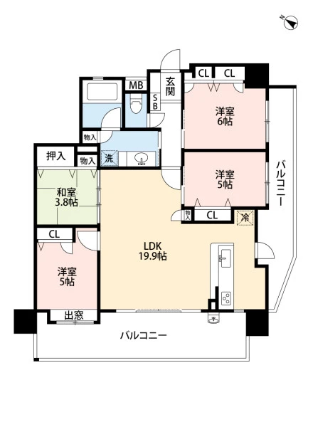 間取り | 4LDK | 間取り向き | 南西 (角部屋) |