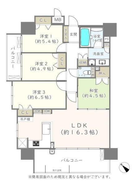 | バルコニー面積 | 17.59㎡ | バルコニー向き | 南西 |