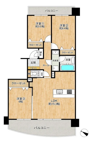 | バルコニー面積 | 22.45㎡ | バルコニー向き | 南西 |