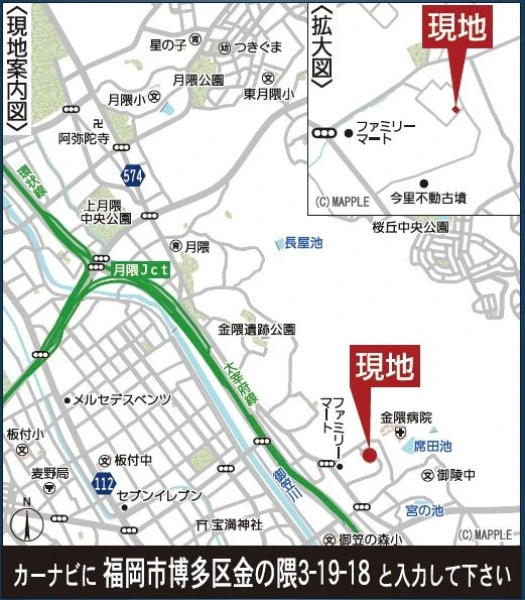 ※地図上の「対象地」は「福岡県福岡市博多区金の隈3丁目 」付近を示しています。実際の場所ではない場合がございます。詳しくはお問い合わせください。