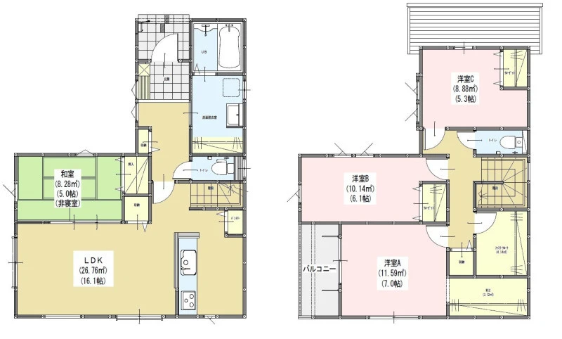 | 特徴 | 24時間換気システム、建築確認完了検査済証、瑕疵保険検査基準適合、フラット35S適合 | ||