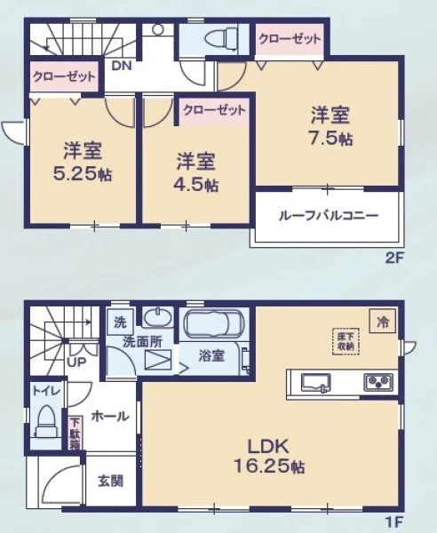 | 設備 | プロパンガス、電気、上水道、下水道、システムキッチン、浄水器、給湯、トイレ2箇所、温水洗浄便座、浴室乾燥機、フローリング、複層ガラス、ルーフバルコニー、収納スペース、床下収納、宅配ボックス、駐車2台可、ディンプルキー、モニタ付インターホン、火災警報器等設置済、建設住宅性能評価取得(予定含む) | ||