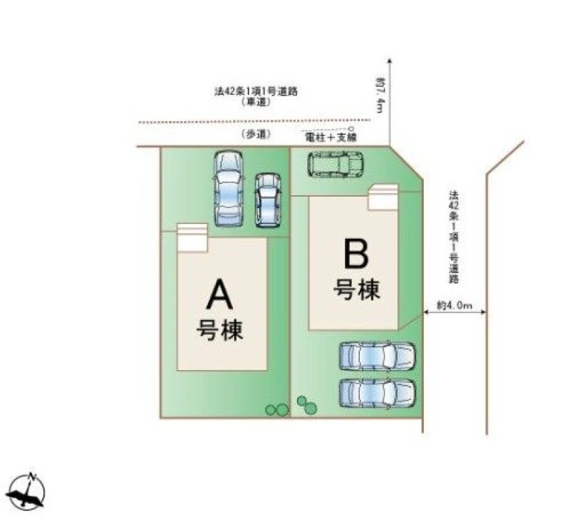 角地 北 間口6.1m 公道 幅7.4m 東 間口14.5m 公道 幅4m |