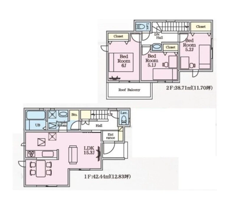 | 設備 | プロパンガス、電気、上水道、下水道、システムキッチン、給湯、トイレ2箇所、温水洗浄便座、フローリング、複層ガラス、ルーフバルコニー、収納スペース、床下収納、ディンプルキー、モニタ付インターホン、火災警報器等設置済、建設住宅性能評価取得(予定含む) 断熱等級6取得 第一種換気 | ||