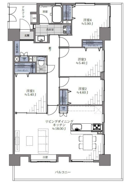 | 間取り | 4LDK | 間取り向き | 南 (角部屋) |