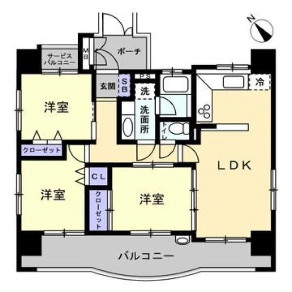 | 間取り | 3LDK | 間取り向き | (角部屋) |