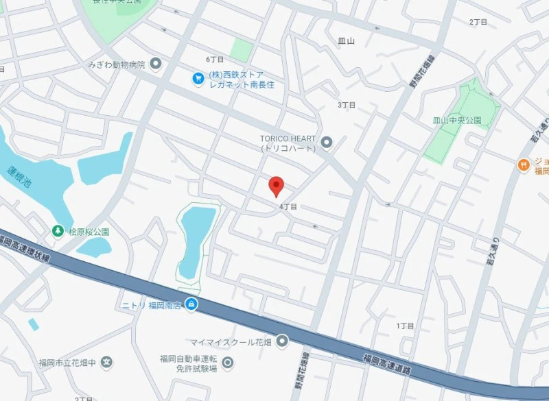 ※地図上の「対象地」は「福岡県福岡市南区皿山4丁目 」付近を示しています。実際の場所ではない場合がございます。詳しくはお問い合わせください。