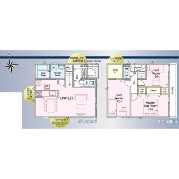 | 設備 | 都市ガス、電気、上水道、下水道、システムキッチン、カウンターキッチン、浄水器、給湯、トイレ2箇所、温水洗浄便座、シャンプードレッサー、浴室乾燥機、フローリング、複層ガラス、収納スペース、ウォークインクローゼット、床下収納、駐車2台可、ディンプルキー、モニタ付インターホン、火災警報器等設置済 | ||