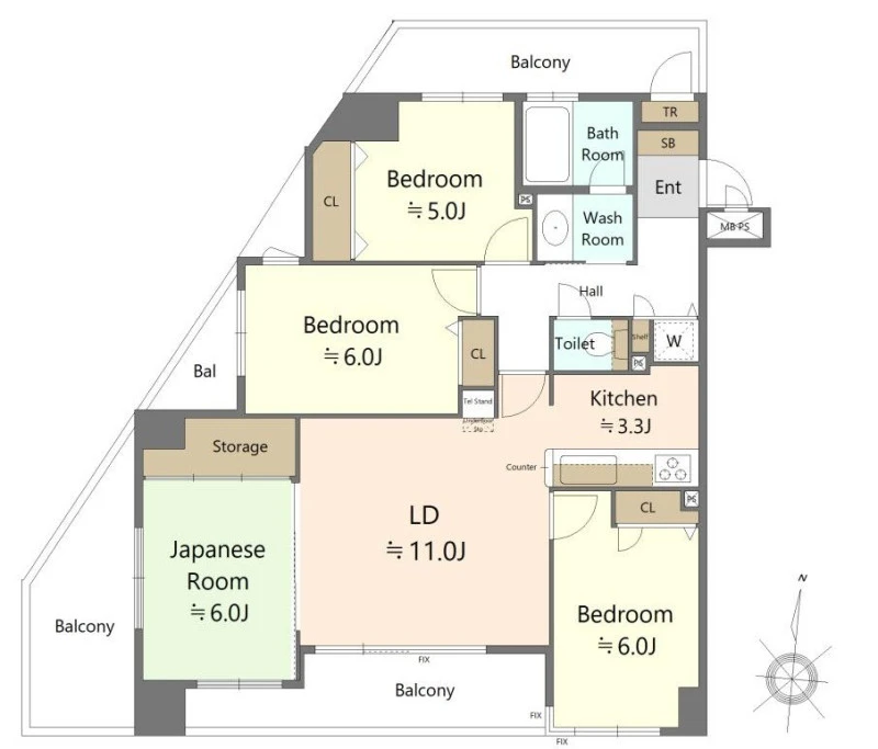 | 間取り | 4LDK | 間取り向き | 南西 (角部屋) |