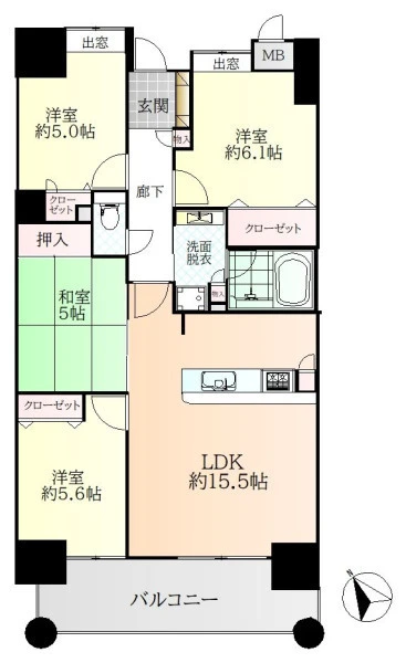 | バルコニー面積 | 11.09㎡ | バルコニー向き | 南西 |
