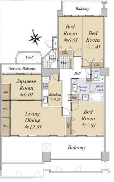 | バルコニー面積 | 51.6㎡ | バルコニー向き | 南 |