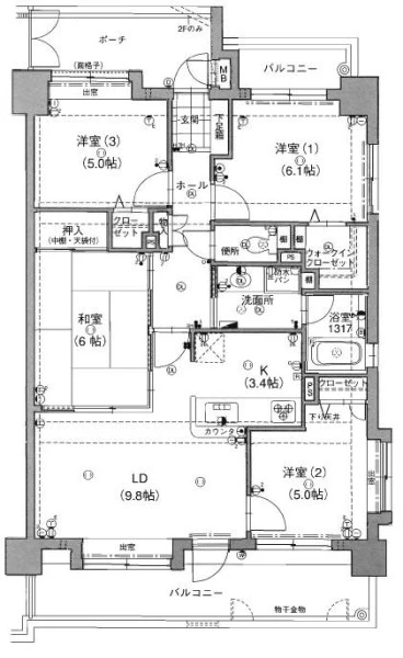 | バルコニー面積 | 17.1㎡ | バルコニー向き | 南西 |