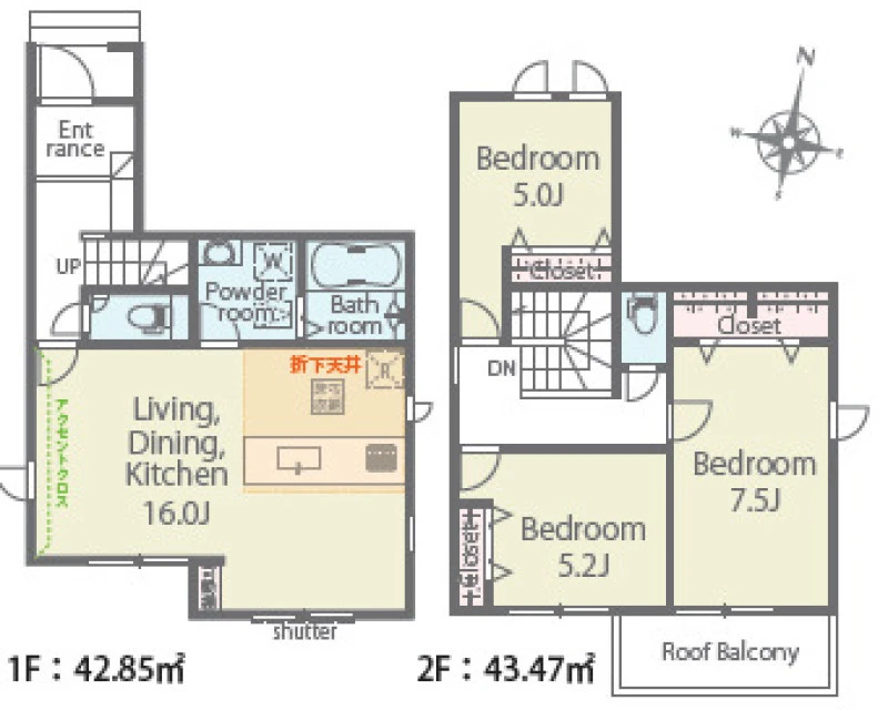 | 設備 | ガスその他、電気、上水道、下水道、システムキッチン、食器洗浄乾燥機、給湯、トイレ2箇所、温水洗浄便座、フローリング、複層ガラス、ルーフバルコニー、収納スペース、床下収納、ディンプルキー、モニタ付インターホン、火災警報器等設置済、建設住宅性能評価取得(予定含む) | ||