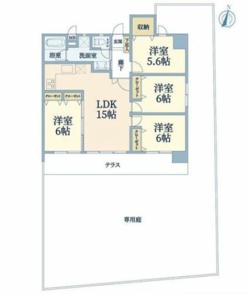 | 間取り | 4LDK | 間取り向き | 南 (角部屋) |