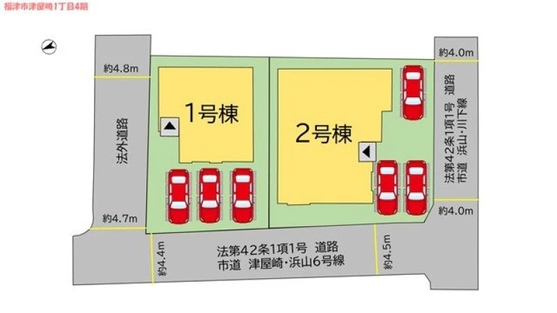 角地 西 間口10.8m 公道 幅4.4m 北 間口12.5m 公道 幅4.7m |