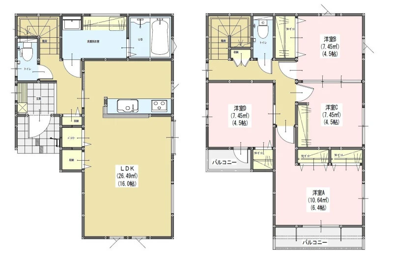 | 設備 | プロパンガス、電気、上水道、下水道、側溝、システムキッチン、カウンターキッチン、食器洗浄乾燥機、追焚機能、トイレ2箇所、温水洗浄便座、シャンプードレッサー、浴室乾燥機、複層ガラス、床下収納、駐車2台可、モニタ付インターホン、火災警報器等設置済、プロパンガス、上水道、下水道、側溝、省エネ給湯器、電気 | ||