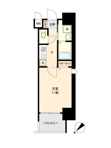 | 間取り | 1K | 間取り向き | (角部屋) |