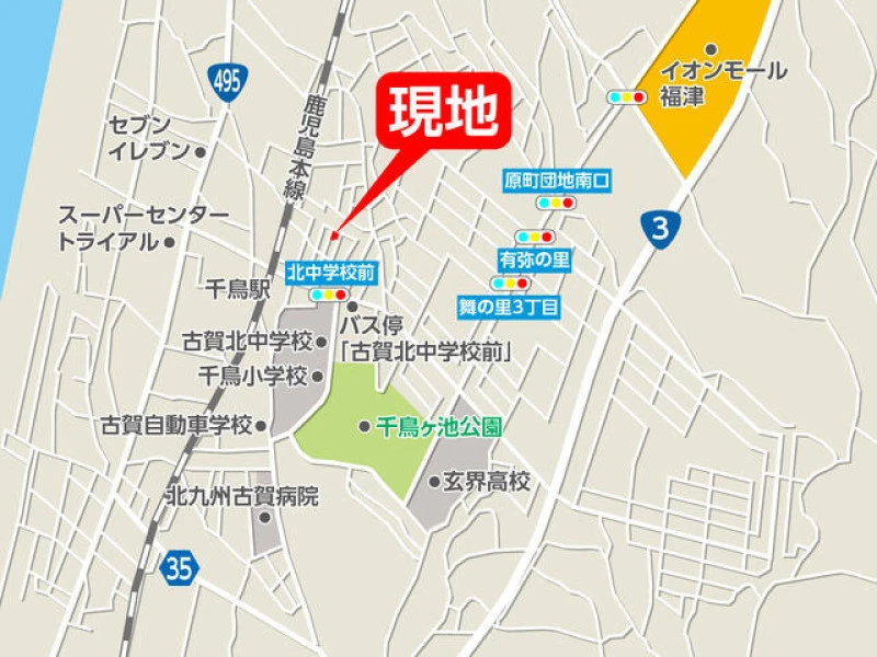 JR鹿児島本線 千鳥駅 徒歩4分 (300m) 「古賀北中学校前」 徒歩3分 (235m) |