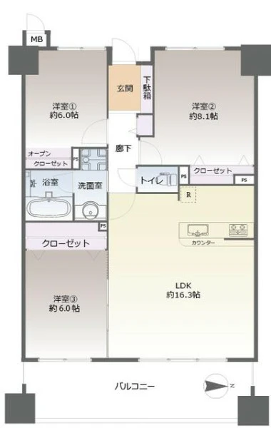 | バルコニー面積 | 28.88㎡ | バルコニー向き | 西 |