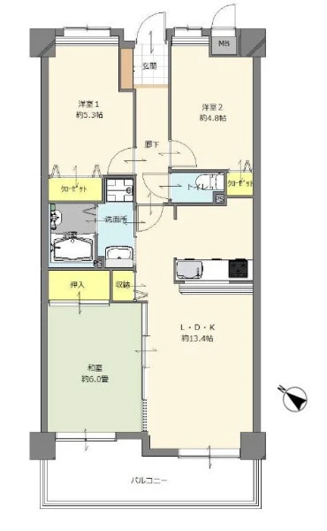 | バルコニー面積 | 8.12㎡ | バルコニー向き | 南西 |
