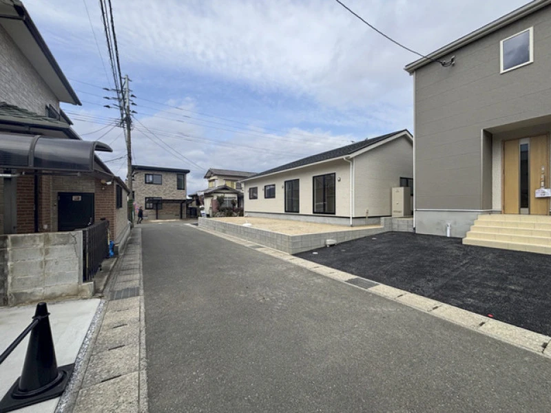 | 設備 | ガスその他、電気、上水道、下水道、システムキッチン、カウンターキッチン、浄水器、IHクッキングヒーター、給湯、トイレ2箇所、温水洗浄便座、シャンプードレッサー、浴室乾燥機、フローリング、複層ガラス、ルーフバルコニー、オール電化、収納スペース、床下収納、駐車3台以上可、ディンプルキー、モニタ付インターホン、火災警報器等設置済 | ||