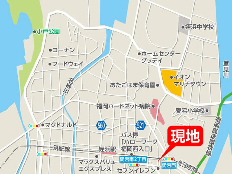 福岡市空港線 姪浜駅 徒歩9分 (700m) 「ハローワーク福岡西入口」 徒歩6分 (450m) |