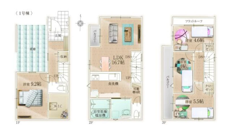 | 設備 | 都市ガス、電気、上水道、下水道、側溝、食器洗浄乾燥機、追焚機能、トイレ2箇所、温水洗浄便座、浴室乾燥機、ウォークインクローゼット、モニタ付インターホン | ||