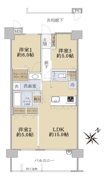 | 専有面積 | 69.3㎡(壁芯) | 建物構造 | 鉄筋コンクリート(RC) |