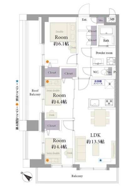 | バルコニー面積 | 6.73㎡ | バルコニー向き | 南西 |