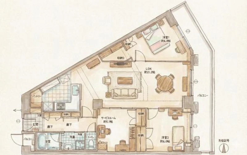 | 間取り | 2LDK+S | 間取り向き | 北東 |