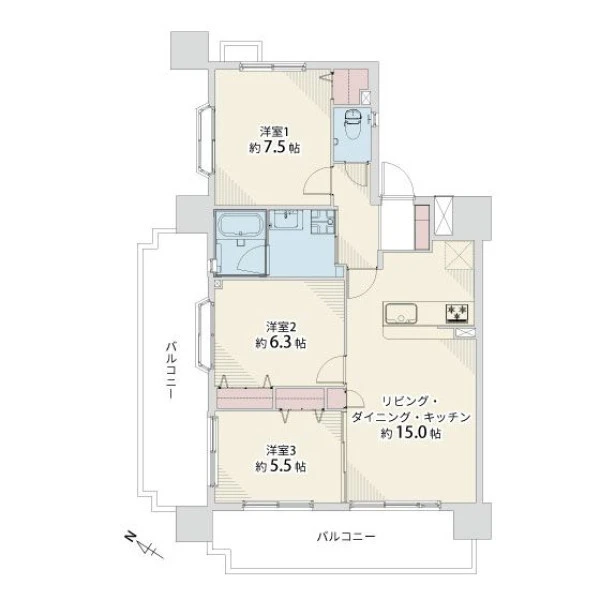 | バルコニー面積 | 25.65㎡ | バルコニー向き | 南西 |