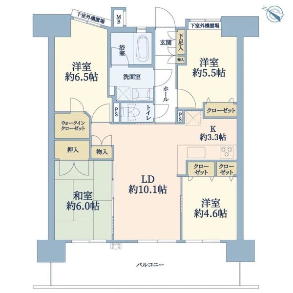 | バルコニー面積 | 16.6㎡ | バルコニー向き | 南西 |