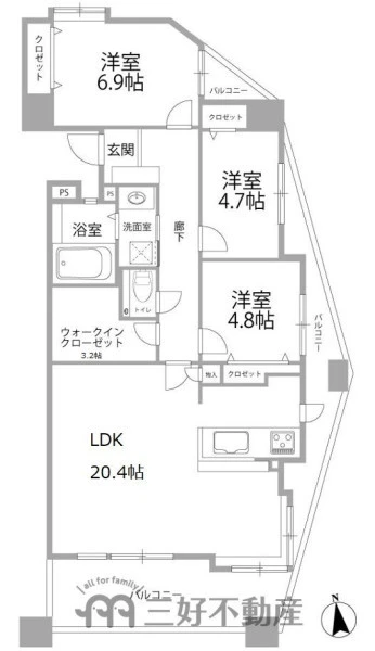 | 間取り | 3LDK | 間取り向き | (角部屋) |