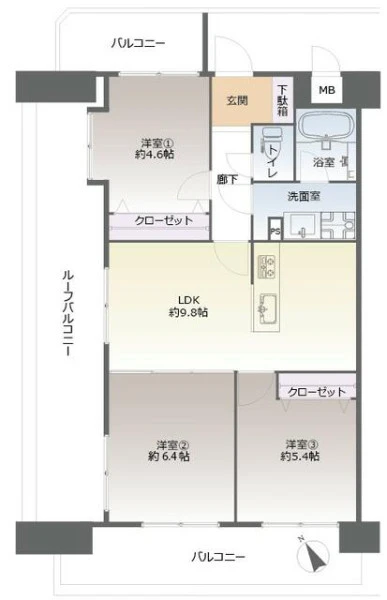 | バルコニー面積 | 14.8㎡ | バルコニー向き | 南西 |