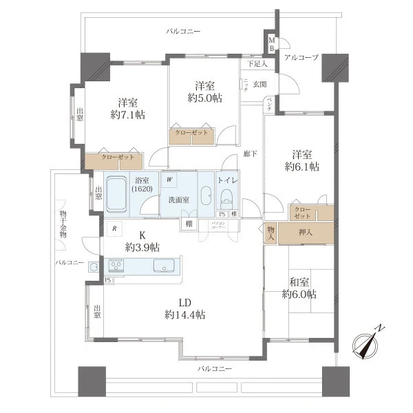 | 間取り | 4LDK | 間取り向き | (角部屋) |