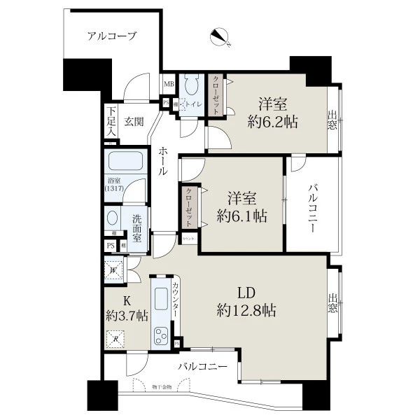 | 間取り | 2LDK | 間取り向き | (角部屋) |