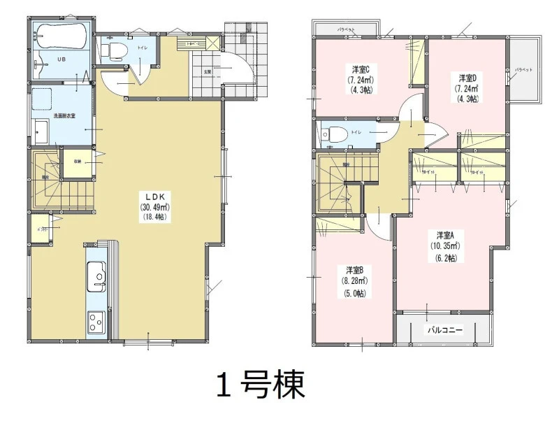 | 設備 | 都市ガス、電気、上水道、下水道、側溝、システムキッチン、カウンターキッチン、食器洗浄乾燥機、追焚機能、トイレ2箇所、温水洗浄便座、浴室乾燥機、複層ガラス、床下収納、駐車2台可、モニタ付インターホン、火災警報器等設置済、都市ガス、上水道、下水道、側溝、省エネ給湯器、電気 | ||