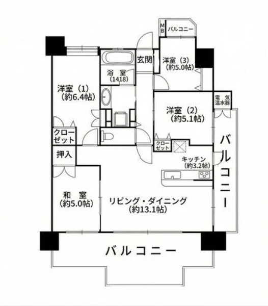 | バルコニー面積 | 30㎡ | バルコニー向き | |