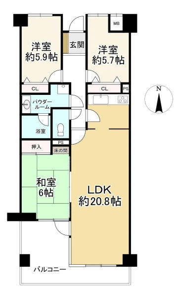 | バルコニー面積 | 13.59㎡ | バルコニー向き | 南 |